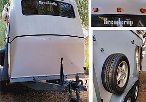 2002 Brenderup Baron TC 'InstaTack' 2-horse bumper pull trailer, w/upgraded aluminum wheels.