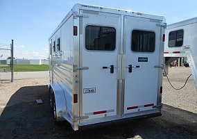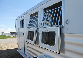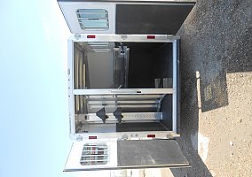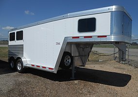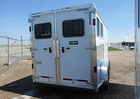 FEATHERLITE 7541-204A, LEGEND EDITION, GOOSENECK, 2 HORSE SLANT W/ FRONT & REAR TACK, WHITE, 7'W X 15'4"L X 7'H, TANDEM 5,200LB DEXTER TORSION AXLES W/ ELECTRIC BRAKES ON EACH (10,400LB GVWR), REAR DOUBLE DOORS W/ WINDOWS & PRESSURE LATCHES, 1-5/8" WALL INSULATION IN HORSE AREA, (2) SQUARE DROP DOWN FEED WINDOWS W/ BARS, (2) WINDOWS W/ BARS ON BUTT WALL, (2) ADJUSTABLE ROOF VENTS, (10) INT TIE RINGS, (4) EXT TIE RINGS, FEATERLITE POLYLAST FLOORING IN HORSE AREA, 4'H RUBBER KICK MATTS, FRONT TACK W/ 36" SIDE ENTRY DOOR W/ WINDOW & SCREEN, ADJUSTABLE SADDLE RACK, CLOTHES ROD, HALTER HOOKS, BRUSH TRAY, (1) SWINGING BLANKET BAR, LED LOAD LIGHTS, RUBBER DOCK BUMPERS, ST235/80R16 LRE TIRES W/ SILVER ALUMINUM WHEELS, SPARE TIRE.